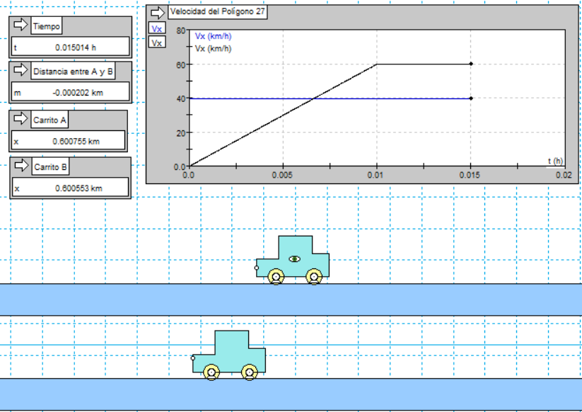 En ese instante, el automóvil B tiene una distancia de 0.133333 km con respecto al automóvil A.